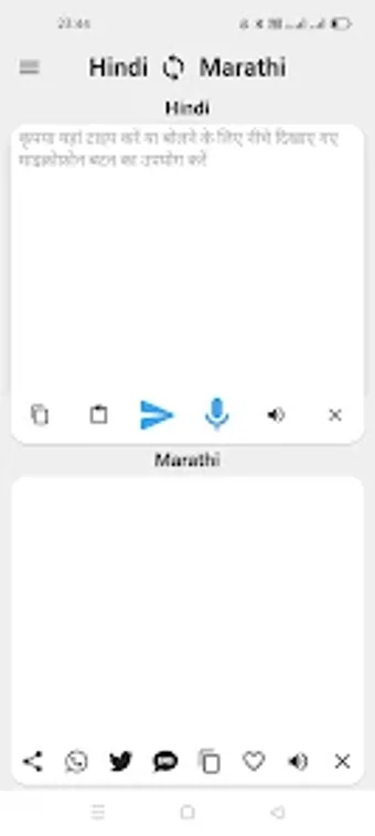 Hindi To Marathi Translator to prosta i łatwa w użyciu aplikacja, która umożliwia tłumaczenie słów, zdań i tekstu z hindi na marathi. Oferuje również odwrotne tłumaczenie z marathi na hindi. Dzięki tej aplikacji możesz bezproblemowo komunikować się w obu językach.